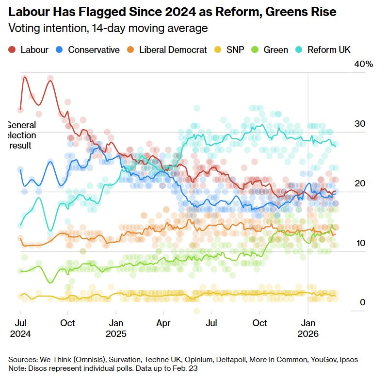 绿党赢得了曼彻斯特一席下议院特别选举,凸显出其对英国首相基尔·斯塔默所领导的执政工党在左翼侧翼所构成的威胁。这次特别选举失败对英国首相基尔·斯塔默领导的执政党工党来说是一个重大打击,该党此前曾在19个月前以绝大多数选票赢得了重要席位。这一结果也预示着英国执政党可能将在5月份的一轮地方选举中遭受重大损失,在那里它必须与包括绿党和奈杰尔·法拉奇领导的改革党在内的多个政党势力进行激烈斗争。随着斯塔默左翼票仓流失,英国政治版图碎片化加深、英国本土资产面临更高政治风险溢价。